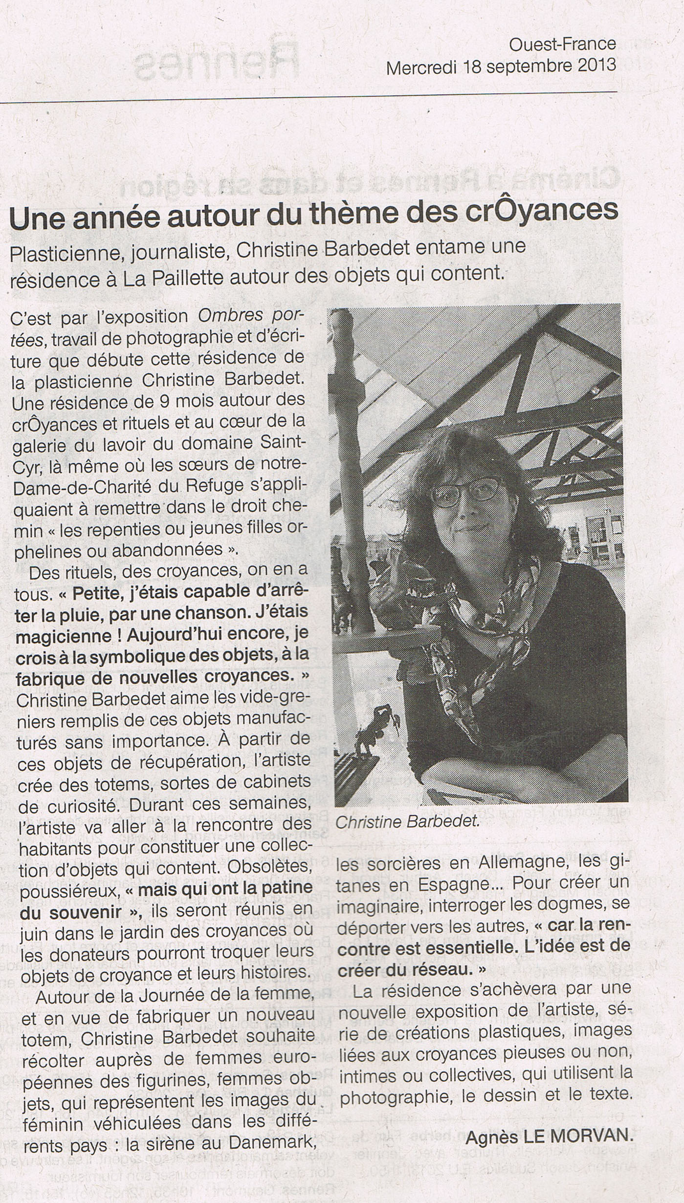 Auteure, journaliste et plasticienne en résidence à La Paillette, Christine Barbedet questionne les objets qui content et racontent des histoires auxquelles on croit ou on a cru, qu’elle nomme poétiquement « Objets de crôyances ».